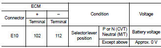 When the selector lever position is P or N, park/neutral position (PNP) signal from the TCM is sent to ECM (CVT models).