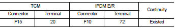 4. Check the continuity between TCM harness connector and IPDM E/R harness connector.