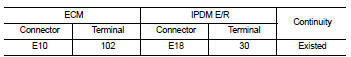 3. Check the continuity between ECM harness connector and IPDM E/R harness connector.