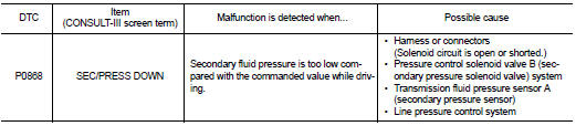 Nissan Altima (L32) 2007-2012 Service Manual: P0868 secondary pressure down