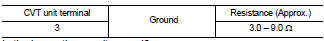 3. Make sure that output voltage of CVT fluid temperature sensor is within the range below.
