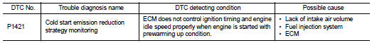 Nissan Altima (L32) 2007-2012 Service Manual: P1421 cold start control