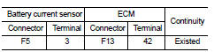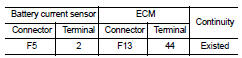 3. Check the continuity between battery current sensor harness connector and ECM harness connector.
