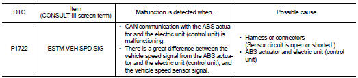 Nissan Altima (L32) 2007-2012 Service Manual: P1722 Estm vehicle speed signal