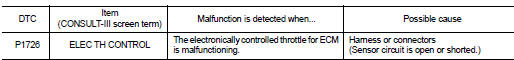 Nissan Altima (L32) 2007-2012 Service Manual: P1726 electric throttle control system