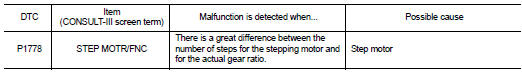 Is “P1778 STEP MOTR/FNC” detected? YES >> Go to TM-187, "Diagnosis Procedure".
