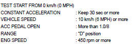 4. Start engine and maintain the following conditions for at least 30 consecutive seconds.