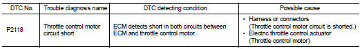 Nissan Altima (L32) 2007-2012 Service Manual: P2118 throttle control motor