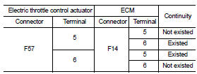 3. Check the continuity between electric throttle control actuator harness connector and ECM harness connector.