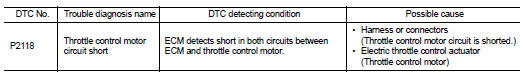 Nissan Altima (L32) 2007-2012 Service Manual: P2118 throttle control motor