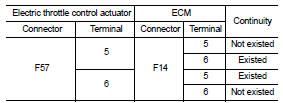 3. Check the continuity between electric throttle control actuator harness connector and ECM harness connector.