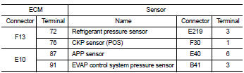 • Crankshaft position sensor (POS) (Refer to EC-786, "Component Inspection".) • EVAP control system pressure sensor (Refer to EC-824, "Component Inspection".) • Refrigerant pressure sensor (Refer to EC-975, "Diagnosis Procedure".) Is the inspection result normal? YES >> GO TO 10.