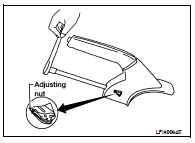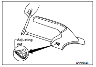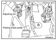2. Insert a deep socket wrench onto adjusting nut. Rotate adjusting nut to fully loosen cable, and then release parking brake pedal.