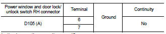 4. Check continuity between power window and door lock/unlock switch connector (A) and ground.