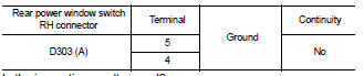 4. Check continuity between rear power window switch RH connector (A) and ground.
