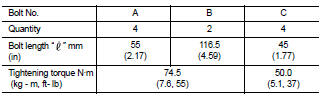 • When installing the transaxle assembly to the engine, install the bolts following the standard below.