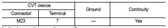 2. Check continuity between CVT device connector M23 terminal 7 and ground.