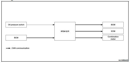• IPDM E/R reads the status of the oil pressure switch and transmits the oil pressure switch signal to BCM via CAN communication. Refer to PCS-11, "System Description".