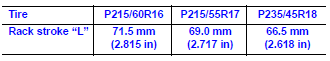 • Measure rack stroke if angles are outside the specified value.