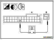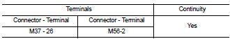 3. Check continuity between front air control connector M37 (A) terminal 26 and sunload sensor harness connector M56 (B) terminal 2.