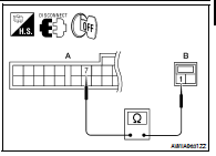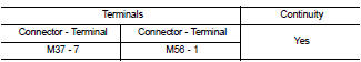 3. Check continuity between front air control connector M37 (A) terminal 7 and sunload sensor harness connector M56 (B) terminal 1.