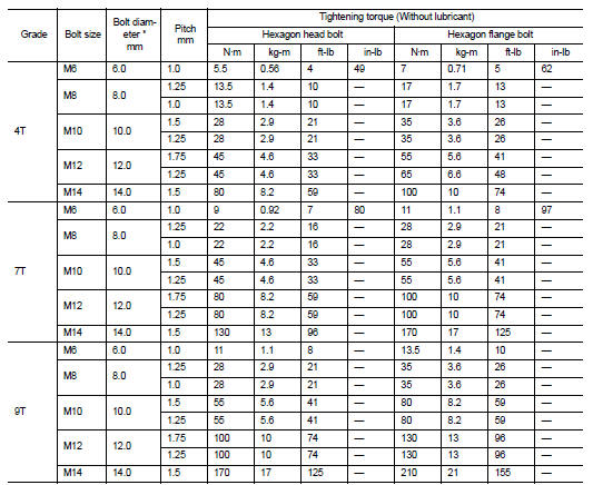 Nissan Altima (L32) 2007-2012 Service Manual ≻ General information ≻ How to use this manual ≻  Tightening torque of standard