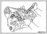 CAUTION: • After removing timing chain, do not turn the crankshaft and camshaft separately, or the valves will strike the pistons.