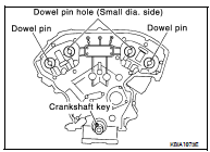 • Make sure that the dowel pin hole, dowel pin and crankshaft key are located as shown.