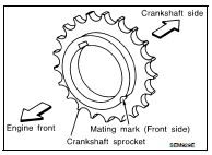 • Make sure the mating marks on the crankshaft sprocket face the front of the engine.
