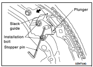 • When installing the chain tensioner, push in the sleeve and keep it pressed in with the stopper pin.