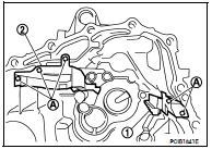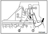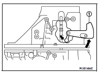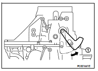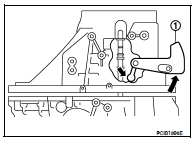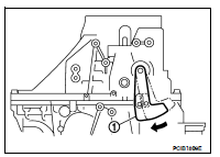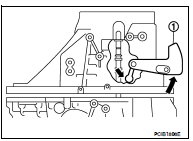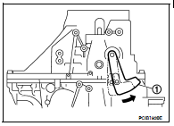 e. With shifter lever A (1) held in the position shown, temporarily assemble transaxle case to clutch housing.