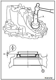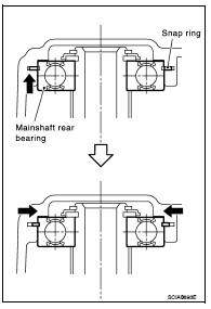 3. Seat snap ring in the groove on mainshaft rear bearing. If snap ring is not seated in the groove on mainshaft rear bearing, remove transaxle case and repeat the procedure 1 from step c.