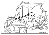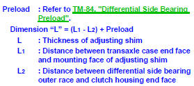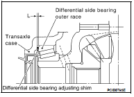 • When adjusting differential side bearing preload, select adjusting shim for differential side bearing. To select adjusting shim, measure clearance “L” between transaxle case and differential side bearing outer race.