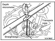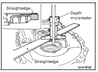 1. Using a depth micrometer and straightedge, measure dimension “L1” between transaxle case end face and mounting face of adjusting shim.