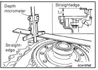 3. Using a depth micrometer and straightedge as shown, measure dimension “L2” between differential side bearing outer race and clutch housing end face.