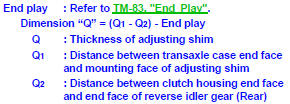 CAUTION: Only 1 adjusting shim can be selected. • Calculate dimension “Q” (thickness of adjusting shim) using the following procedure to satisfy specification of end play for reverse idler gear.