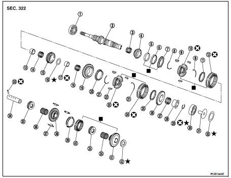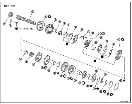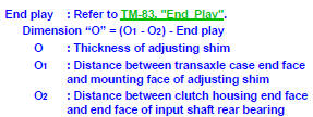 • Calculate dimension “O” (thickness of adjusting shim) using the following procedure to satisfy specification of end play for input shaft rear bearing.