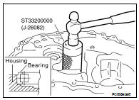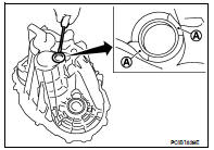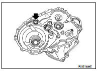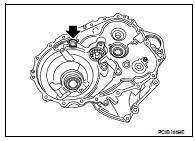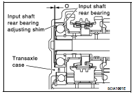 • When adjusting input shaft end play, select adjusting shim for input shaft rear bearing. To select adjusting shim, measure clearance between transaxle case and input shaft rear bearing.