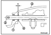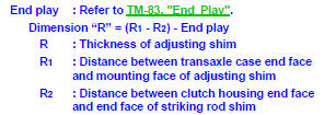 • Calculate dimension “R” (thickness of adjusting shim) using the following procedure to satisfy specification of end play for striking rod.