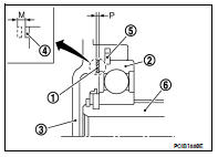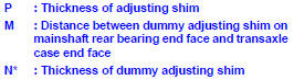 • Calculate dimension “P” (thickness of adjusting shim) using the following procedure to satisfy specification of end play for mainshaft rear bearing.