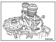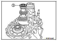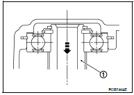 • When transaxle is shifted to the 1st gear position, mainshaft assembly (1) is declined.