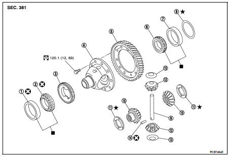 CAUTION: Up to 2 adjusting shims can be selected. • Calculate dimension “L” (thickness of adjusting shim) using the following procedure to satisfy specification of preload for differential side bearing.