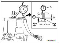 5. Set the dial indicator (A) to dummy adjusting shim (1) through the bore plug mounting hole.