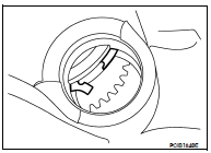 2. Install differential side bearing outer race onto differential side bearing on final gear side. Holding lightly differential side bearing outer race horizontally by hand, rotate final gear five times or more (for smooth movement of bearing roller).