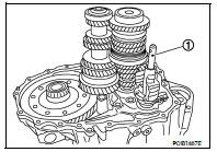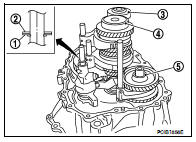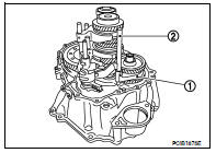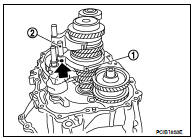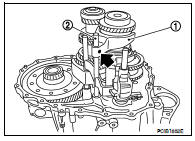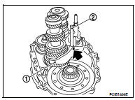 • When transaxle is shifted to the 2nd gear position, mainshaft assembly (1) is lifted.