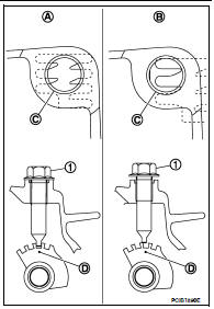 CAUTION: The guide groove (D) of striking rod assembly will be damaged when assembling guide bolt (1) if the lever is not in the neutral position (B).