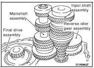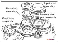 • When transaxle is shifted to the 2nd gear position, mainshaft assembly is lifted.