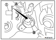 b. Visually confirm from the guide bolt mounting hole (C) that shift lever A is securely set to neutral position (A). If it is not in the neutral position (B), repeat the procedure from step a.