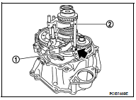 CAUTION: “O2”: Measure at 4 point by approximately 90 degrees and use the average value. 3. Install selected input shaft rear bearing adjusting shim onto input shaft.