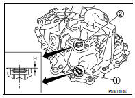CAUTION: Remove old sealant and oil adhering to threads. 31. Install plunger to transaxle case.
